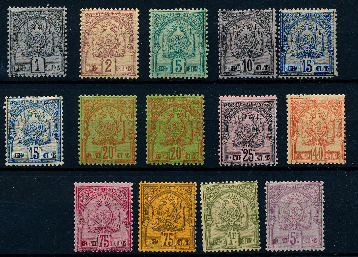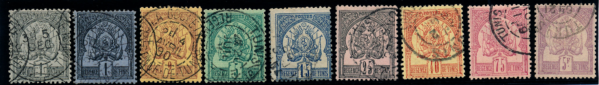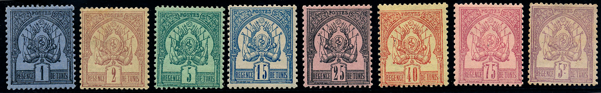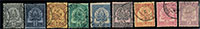 n°1/8 , les 8 valeurs, fond uni. TB.