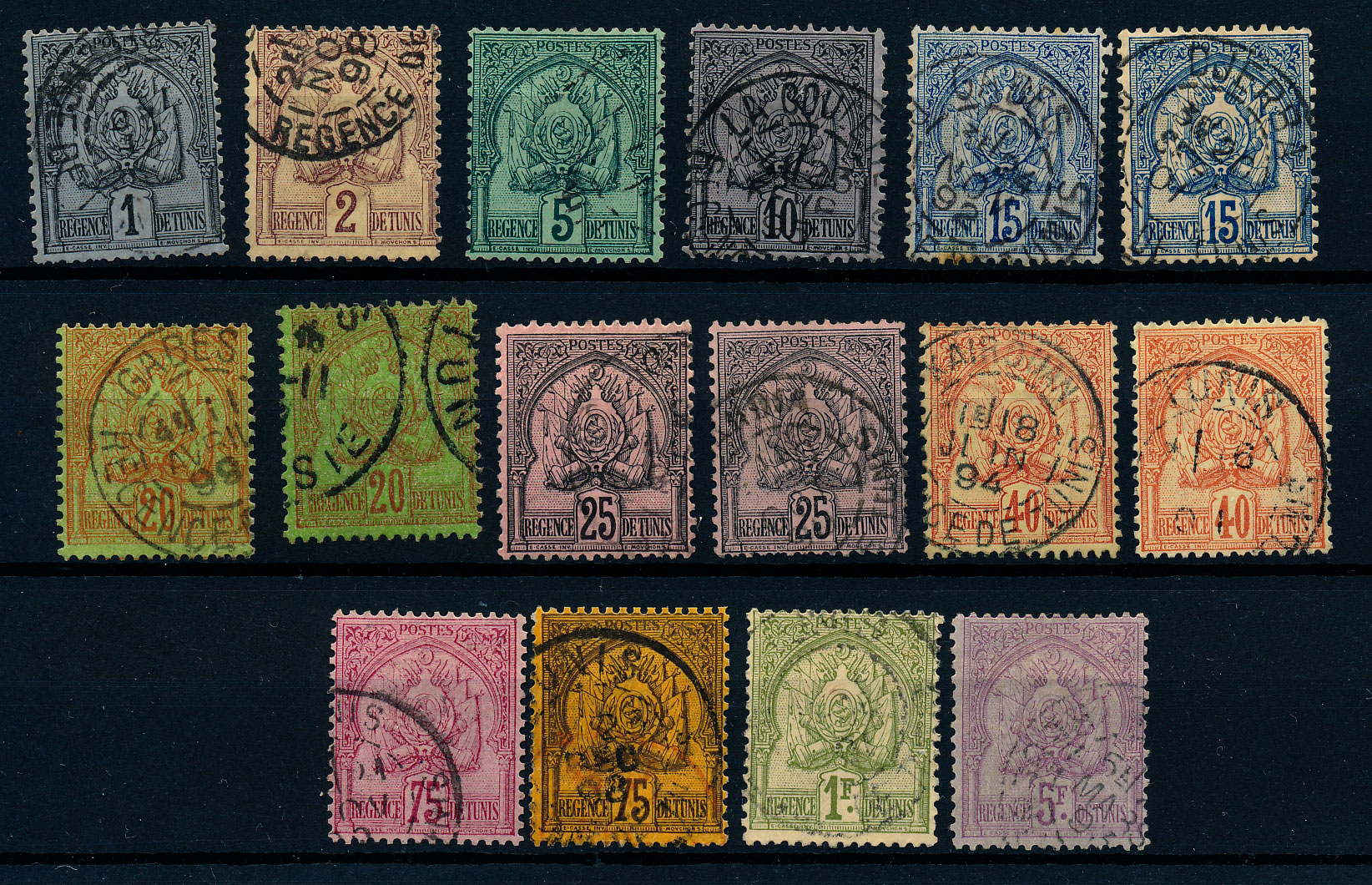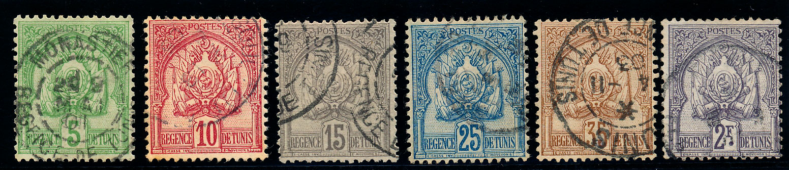 n°6+7+18+21x2 , les 5 timbres, annulés plume, + un ex du 5F avec CàD. TB