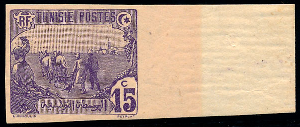 n°33a *, 15c violet, non dentelé avec gomme d"origine intacte. bord de feuille